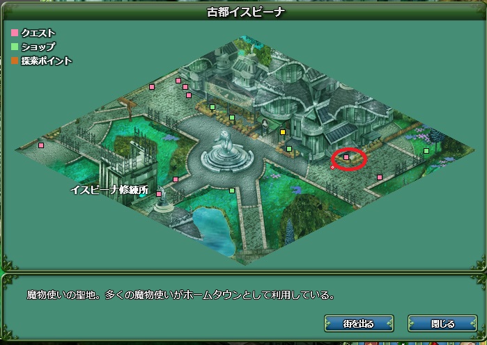 鍛練所へはイスピーナの街の南側に、鍛練所管理人がいるので初級のクエストを受けよう(受注したらその場で達成可能)