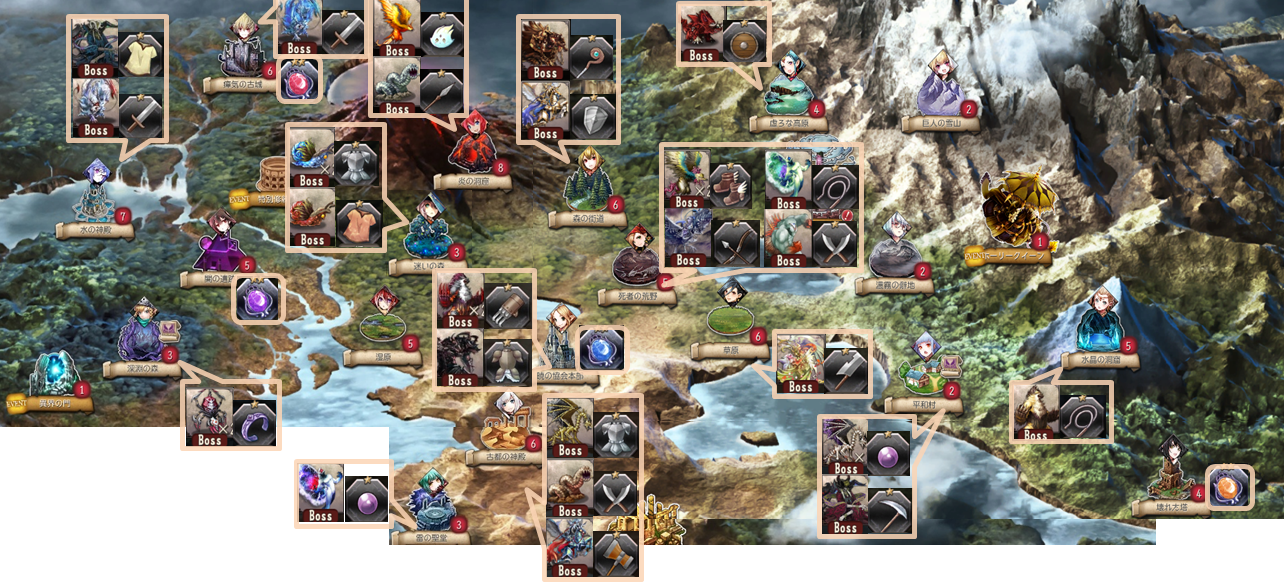ポイントは各地の魔神の顔アイコンがみえること。