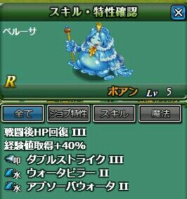 あとスキュラが水ボ16までいきました! メインに食べさせたいところだけど、同種ボーナスがあるから20まで我慢しなきゃダメかな。メインちゃんたちレベルが上がってるだけで素のスキルしか持ってないんですが…(URスキルはMP消費激しいよね…)