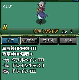 攻撃時HP吸収12 牙装備時の通常攻撃、牙専用スキル攻撃のダメージの12%を回復します。